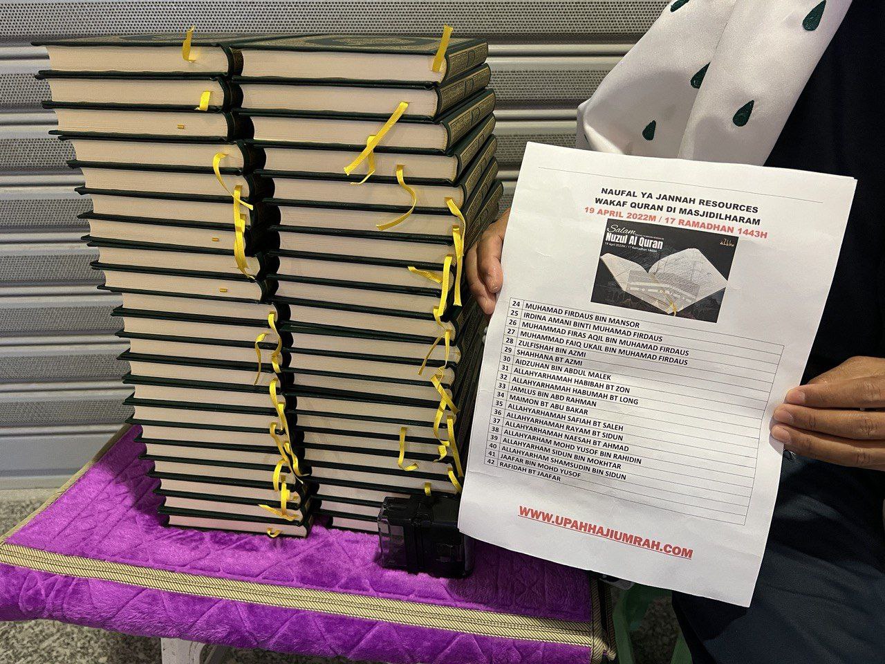 BUKTI PELAKSANAAN AKAN DIBERIKAN DARI BUKTI PEMBELIAN – COP RASMI KHAS – PENYERAHAN AL QURAN KEPADA PEKERJA MASJIDILHARAM